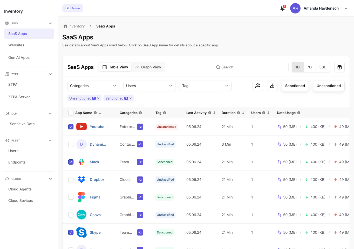 - Manage sanctioned/unsanctioned SaaS and Gen AI apps, optimising costs with usage insights.