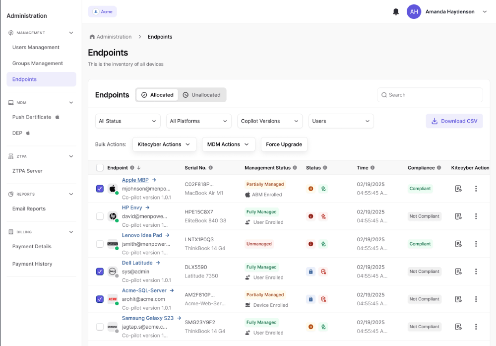 “Kitecyber helped us with IT, security and compliance as a unified solution. It saved us almost 50% in overall cost as compared to our previous solutions, while significantly improving our security and compliance. the builtin device management and IAM integrations, also optimized our onboarding and offboarding workflows.”