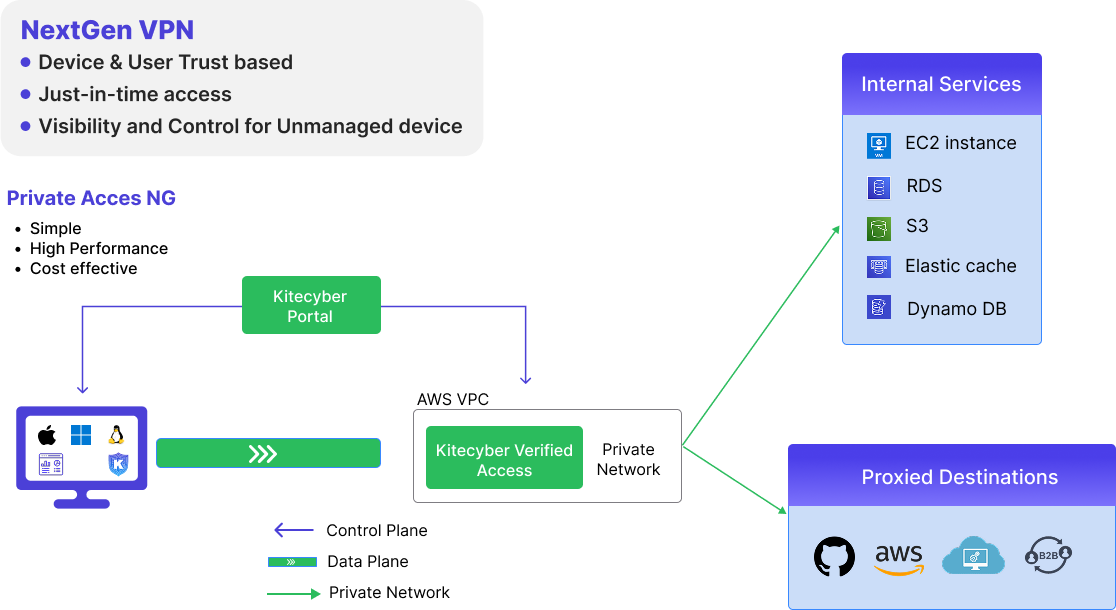 | Public & Private Access | Kitecyber Infra Shield | Legacy VPN | ZTNA |