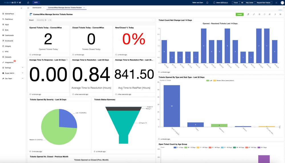 The platform also handles time tracking, billing, agreements, and reporting tailored to MSP business models, so technicians and business managers can work from the same system.