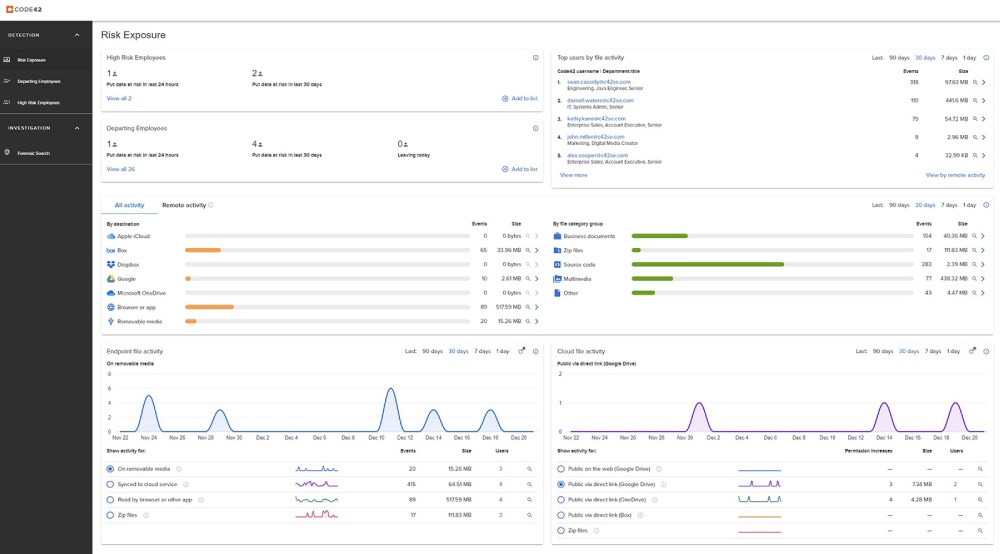 - Monitors all major exfiltration paths including SaaS, generative AI apps, and endpoint devices.