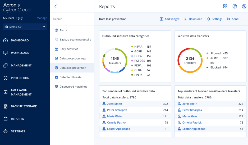 Acronis bundles backup, anti-malware, and DLP in one agent, priced at $85/user/year. G2 users rate it 4.5 stars for its unified cyber-resilience approach, ideal for businesses needing all-in-one protection.