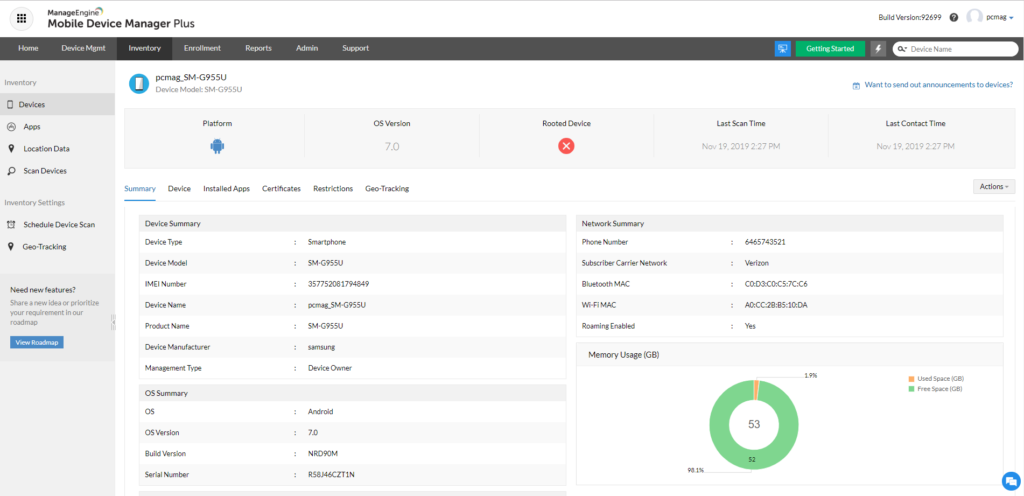 Overview: ManageEngine Mobile Device Manager Plus is a widely used UEM platform for granular patching, software distribution, and asset management. Offers flexible on-prem and cloud deployment models to suit different IT policies. ManageEngine features a comprehensive patch catalog for operating systems and third-party applications. Valued for its breadth of built-in functionality and predictable, cost-competitive licensing